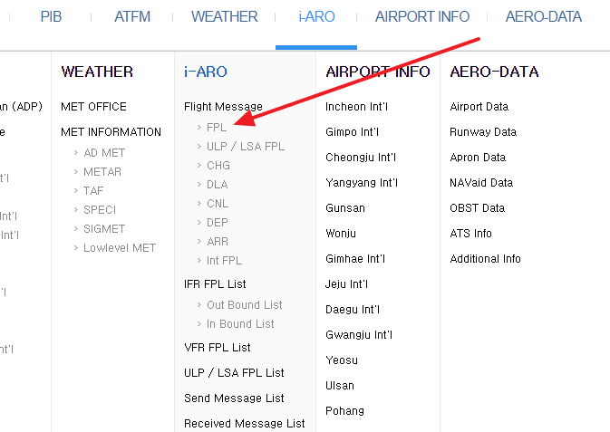 아래처럼 메뉴가 나오는데요. 여기서 Flight Message에 있는 FPL을 누릅니다.