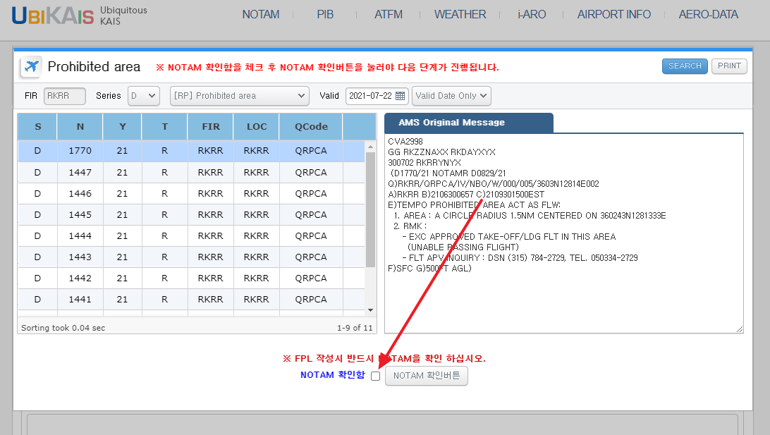 매번 플라이트 플랜을 제출할 때마다 확인해야 하는 상황이 나오는데요.