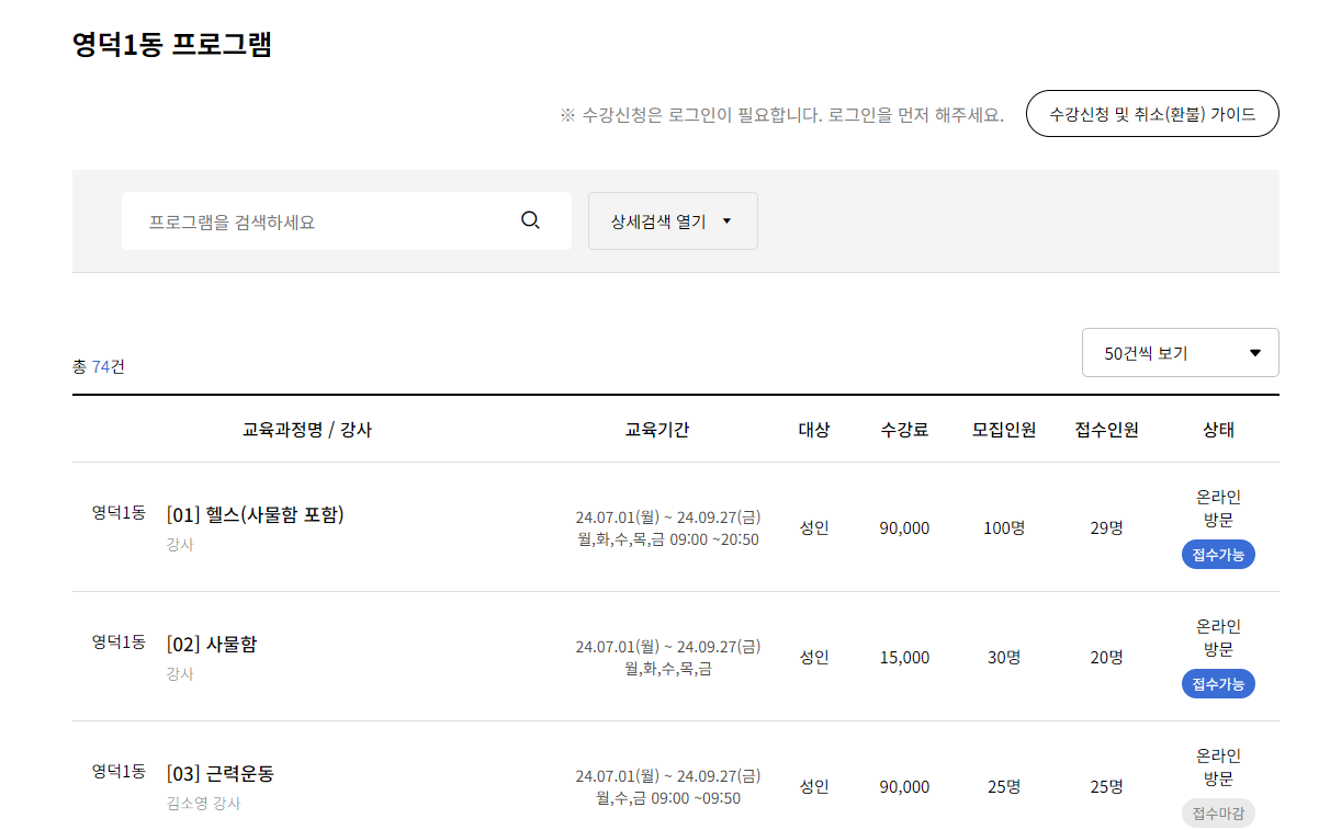 용인시 기흥구 주민자치센터 수강신청